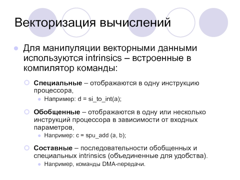 Для манипуляции векторными данными используются intrinsics – встроенные в компилятор