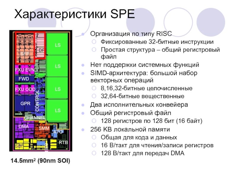 Большие ресурсы памяти: 128 128-битных регистров, 256 KB локальной памяти