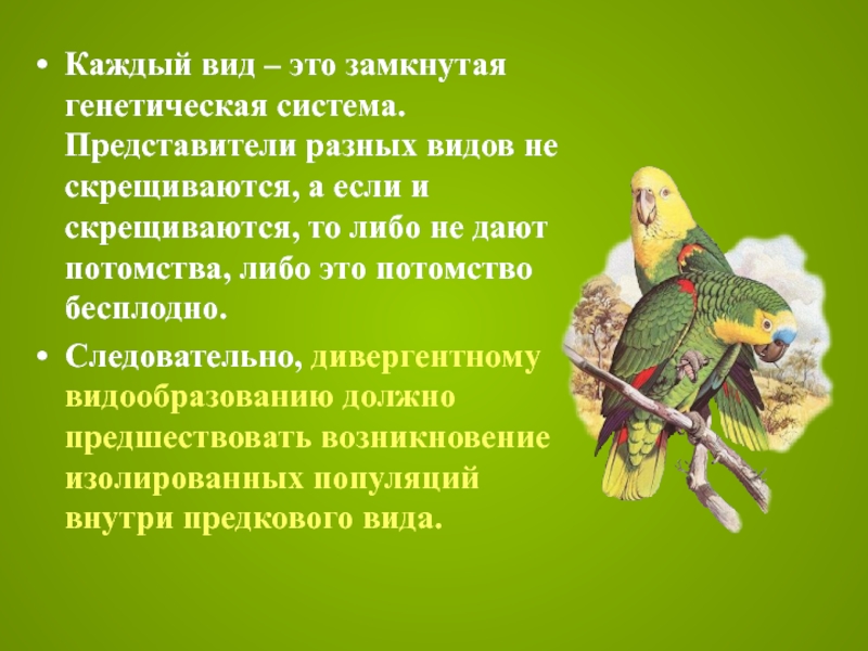 Слайд 7Каждый вид – это замкнутая генетическая система. Представители разных видов не
