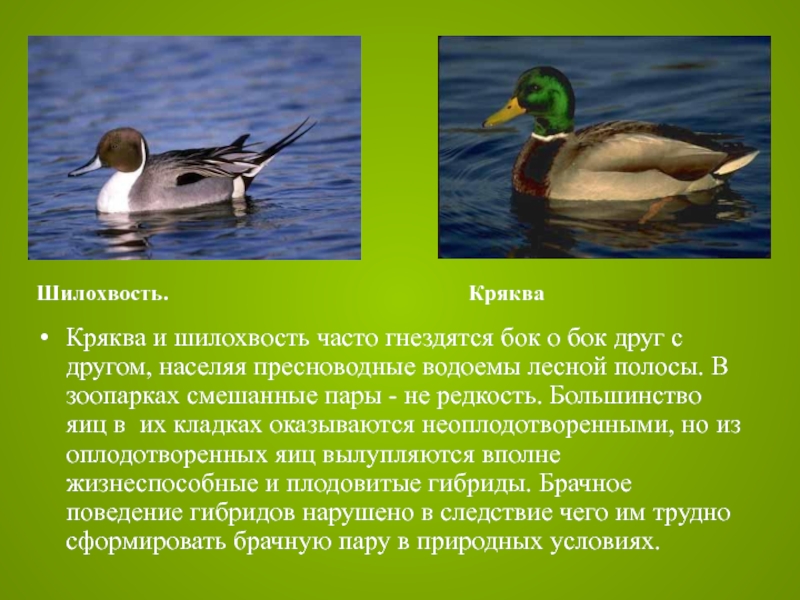 Слайд 19Кряква и шилохвость часто гнездятся бок о бок друг с другом,