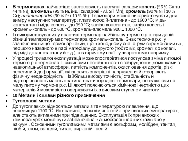 Слайд 11В термопарах найчастіше застосовують наступні сплави: копель (56 % Сu та