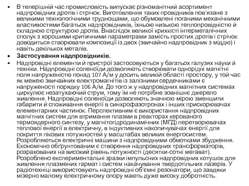 Слайд 7В теперішній час промисловість випускає різноманітний асортимент надпровідних дротів і стрічок.