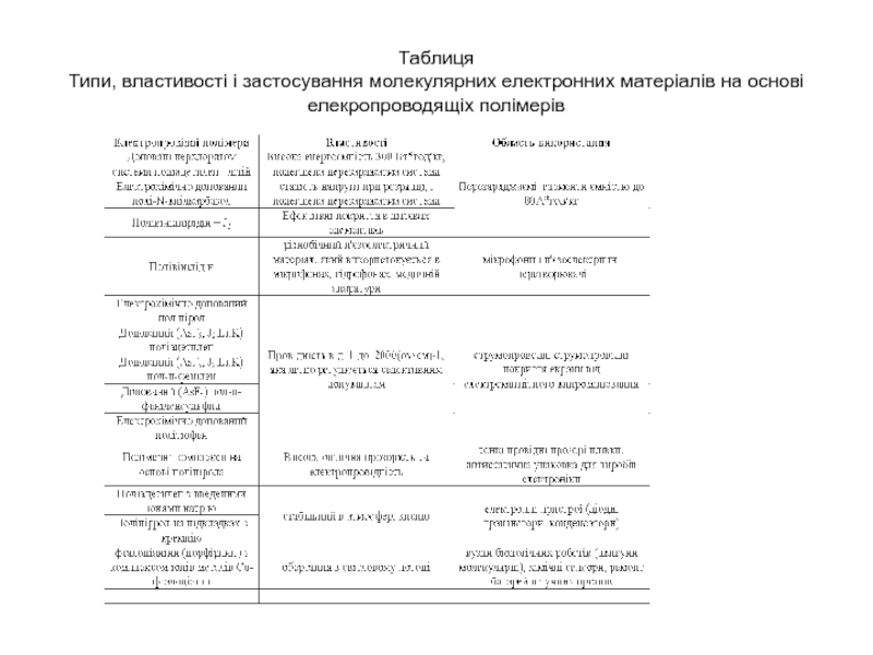 Типи, властивості і застосування молекулярних електронних матеріалів на основі елекропроводящіх