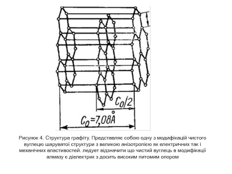 Слайд 36Рисунок 4. Структура графіту. Представляє собою одну з модифікацій чистого вуглецю