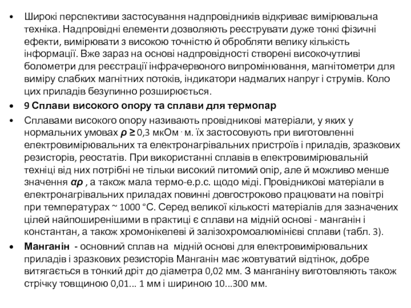 Слайд 9Широкі перспективи застосування надпровідників відкриває вимірювальна техніка. Надпровідні елементи дозволяють реєструвати