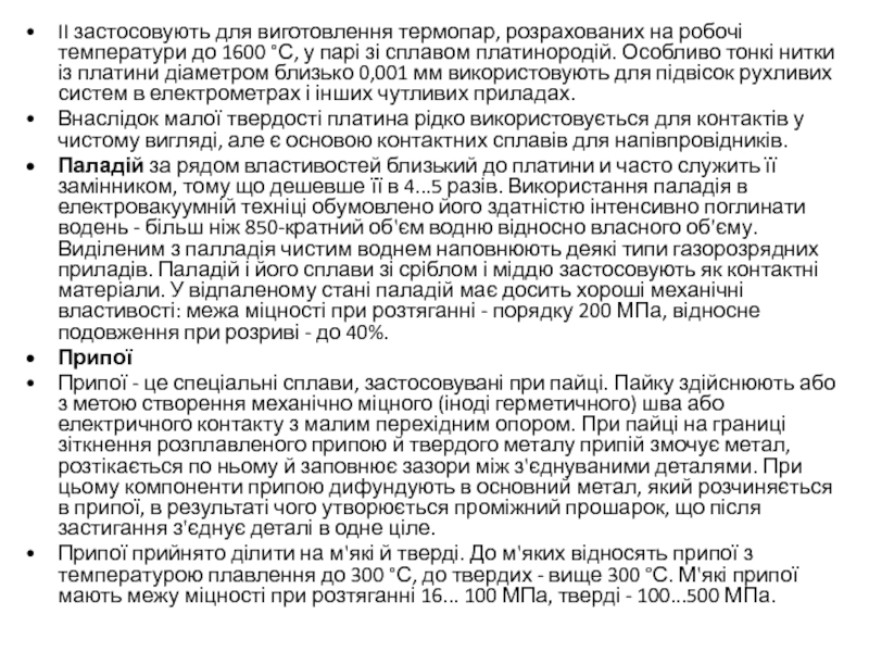 Слайд 16II застосовують для виготовлення термопар, розрахованих на робочі температури до 1600