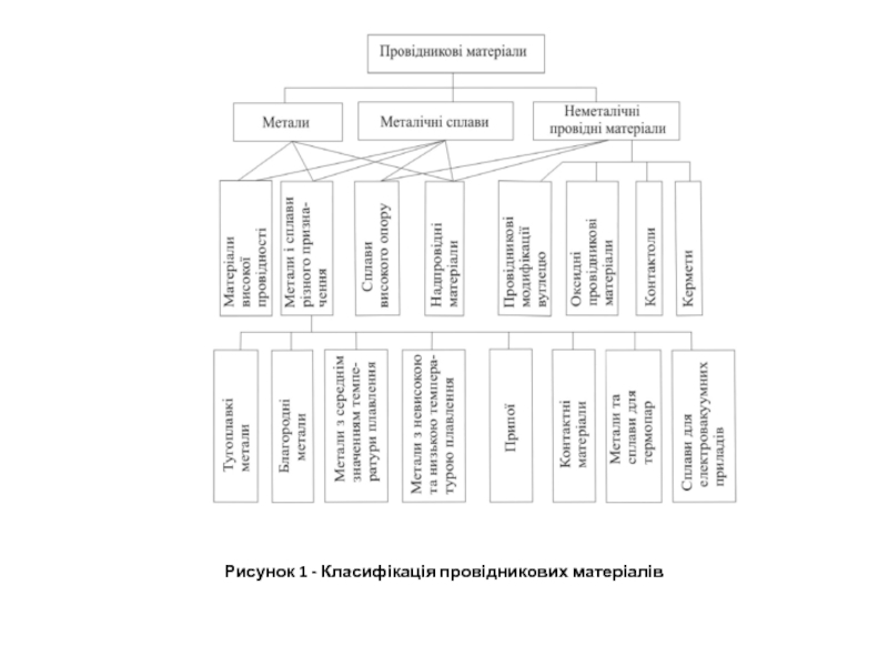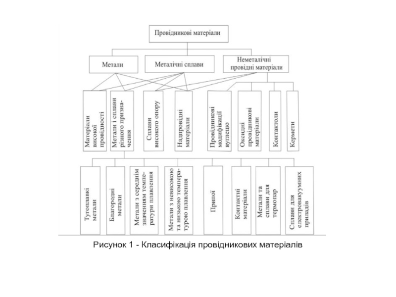 Слайд 28Рисунок 1 - Класифікація провідникових матеріалів