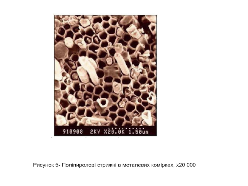 Слайд 37Рисунок 5- Поліпиролові стрижні в металевих комірках, х20 000