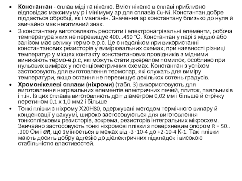 Слайд 10Константан - сплав міді та нікелю. Вміст нікелю в сплаві приблизно