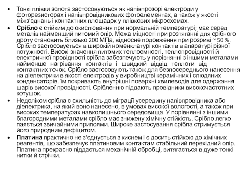 Слайд 15Тонкі плівки золота застосовуються як напівпрозорі електроди у фоторезисторах і напівпровідникових