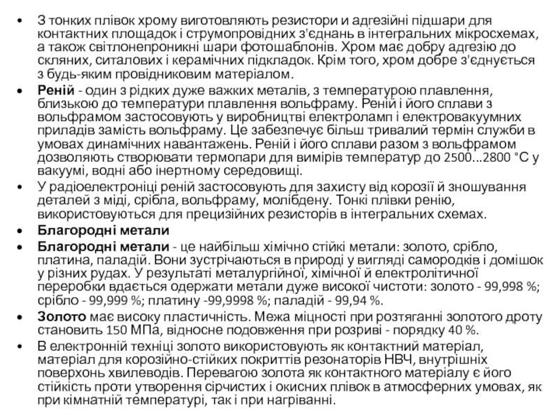 Слайд 14З тонких плівок хрому виготовляють резистори и адгезійні підшари для контактних