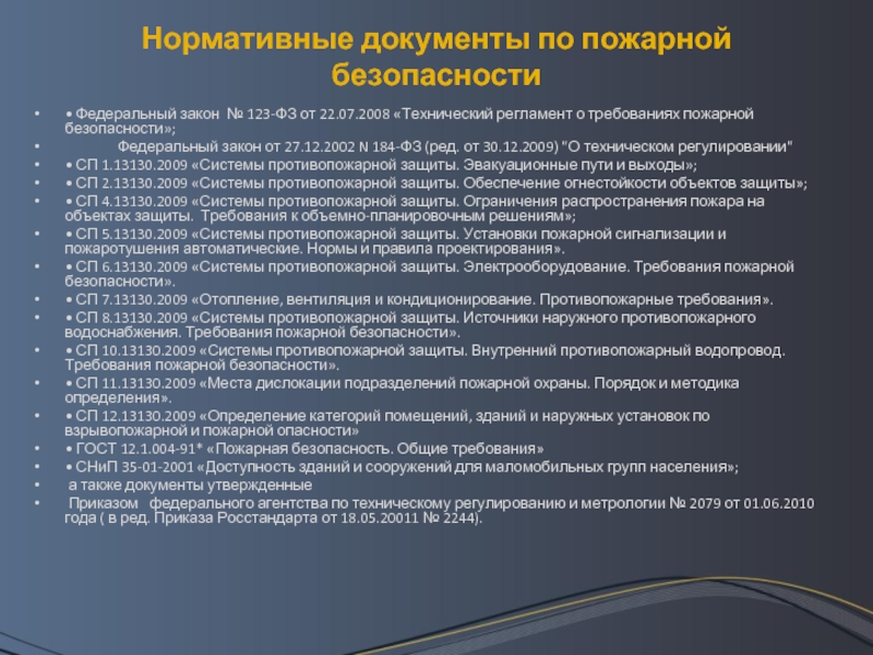 Слайд 4Нормативные документы по пожарной безопасности