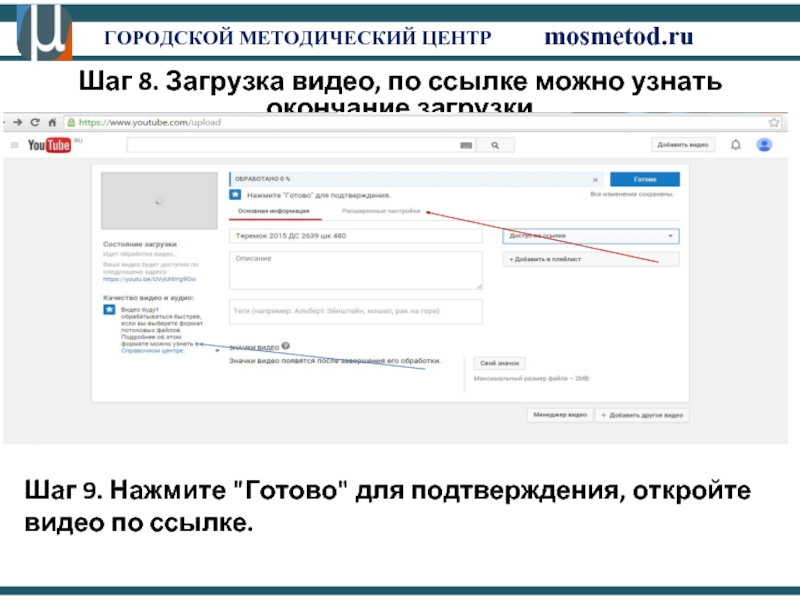 Шаг 8. Загрузка видео, по ссылке можно узнать окончание