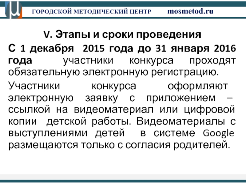 оставляет за собой право на публикацию на официальном сайте Городского методического центра видеоматериалов, присланных участниками в распоряжение оргкомитета;