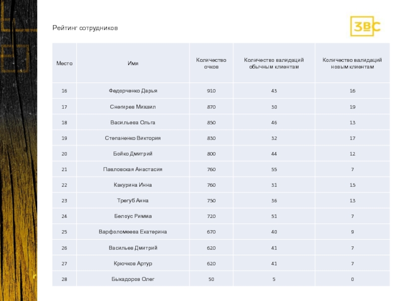 Слайд 11Рейтинг сотрудников
