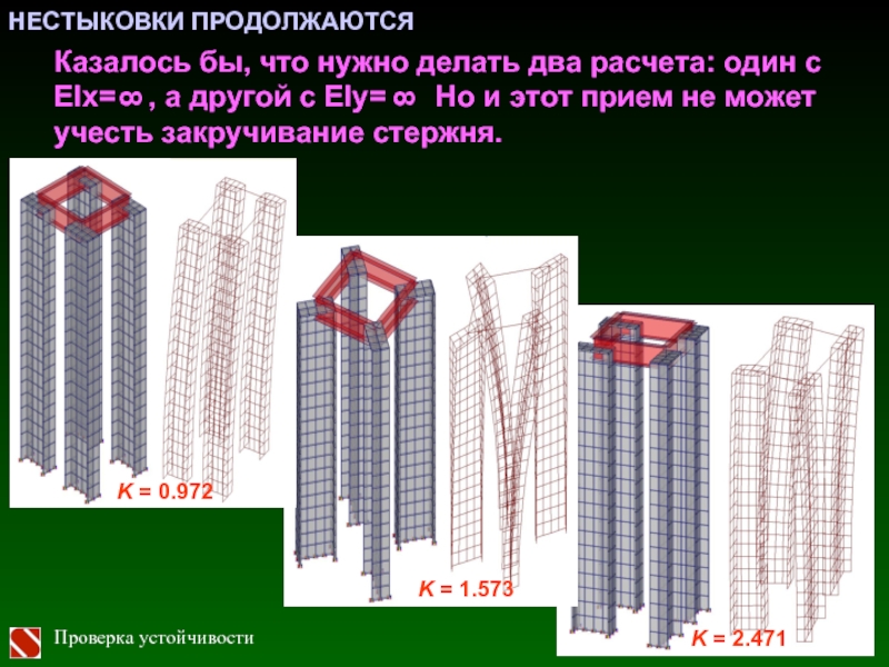 Но все это относится только к плоским схемам деформирования. Только для них расстояния между точками перегиба изогнутой оси можно принимать в качестве расчетной длины.