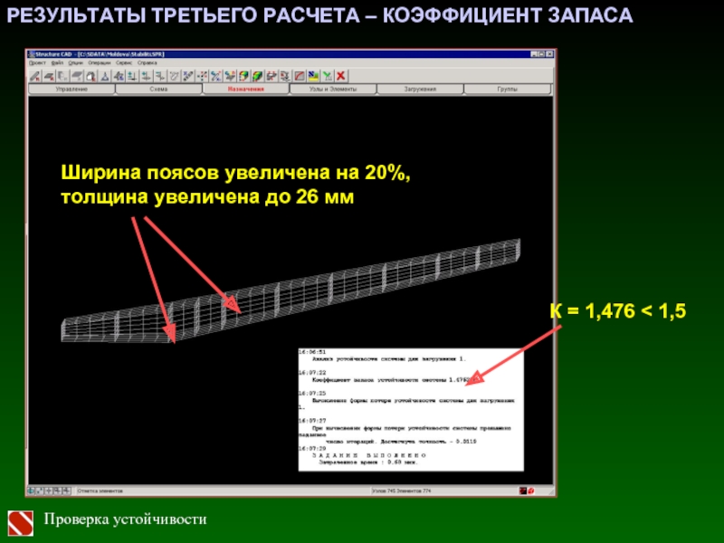 Для этого примера по рекомендациям В.В. Ханджи было получено значение коэффициента запаса k=4,728