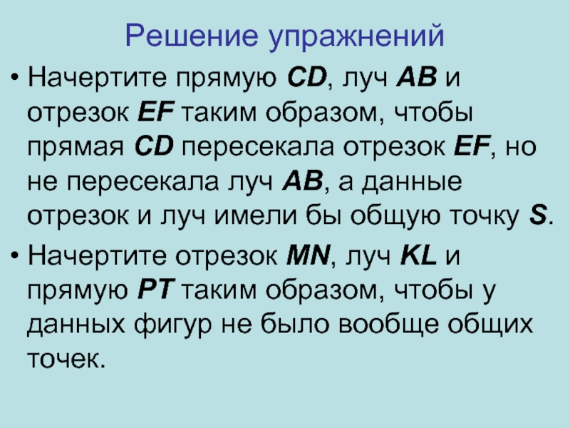 чтобы прямая CD пересекала отрезок EF, но не пересекала луч АВ, а данные отрезок и луч имели бы общую точку S.