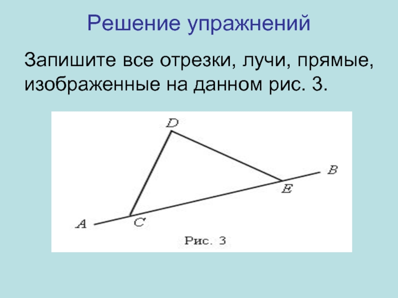 Запишите все отрезки, лучи, прямые, изображенные на данном рис. 3.