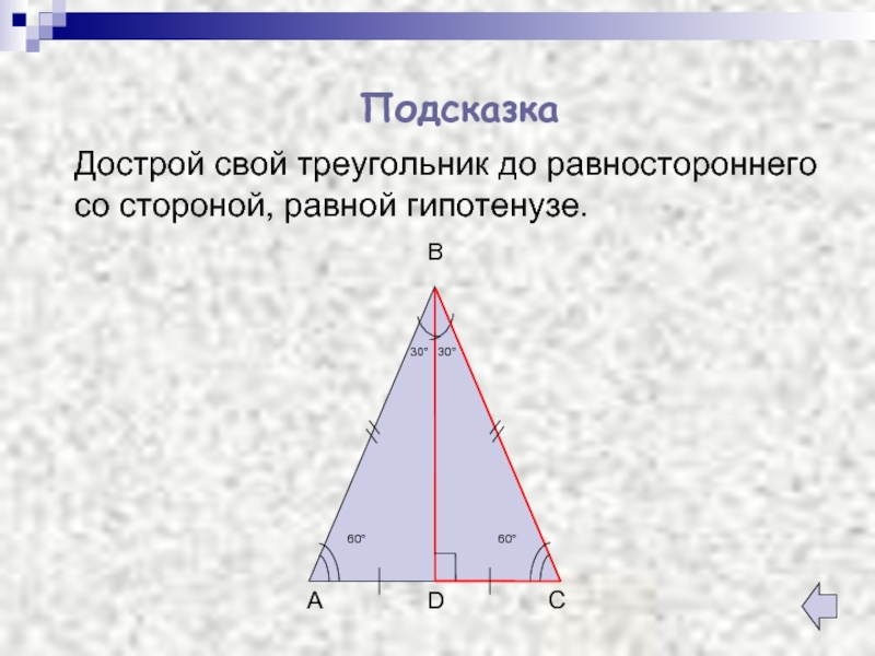 2. Докажите, что катет прямоугольного треугольника, лежащий против угла в 30°, равен половине гипотенузы.