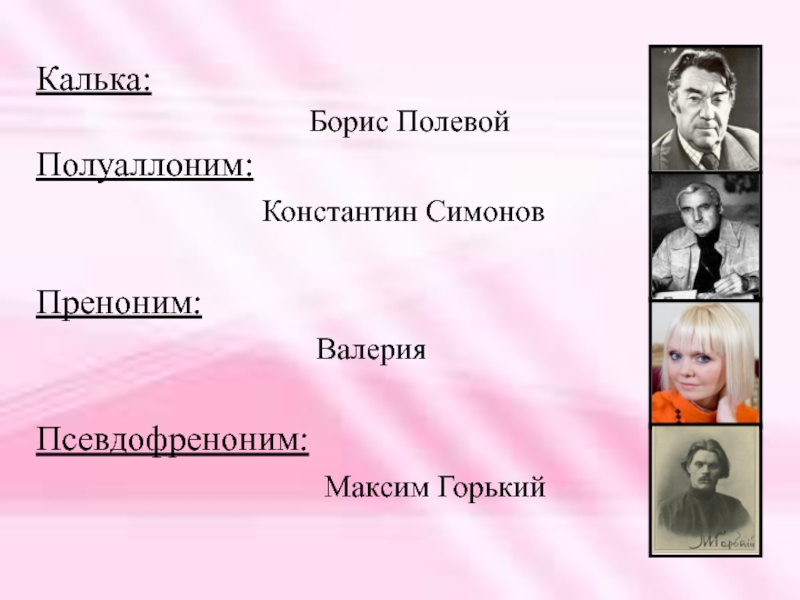 Слайд 6Псевдоним - имя (антропоним), используемое человеком в той или иной публичной