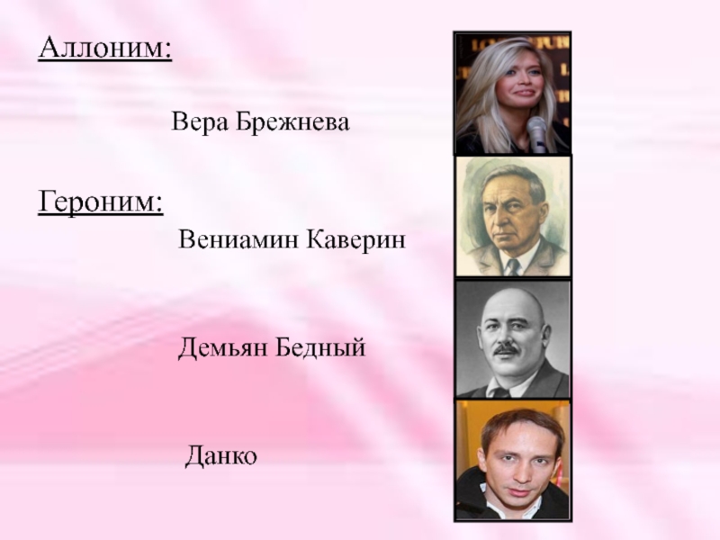 опрашиваемых людей были: Алсу; Баста; Валерия; Аркадий Гайдар; Жасмин; Каста; Тимати; Саша Черный; Антон