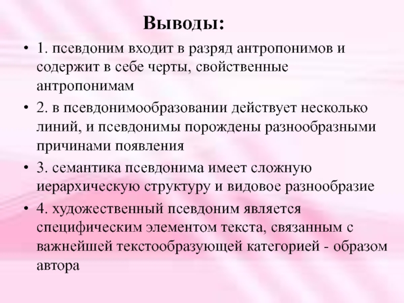 4. художественный псевдоним является специфическим элементом текста, связанным с важнейшей текстообразующей категорией - образом автора