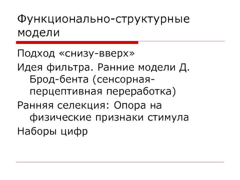 Идея фильтра. Ранние модели Д. Брод-бента (сенсорная-перцептивная переработка)