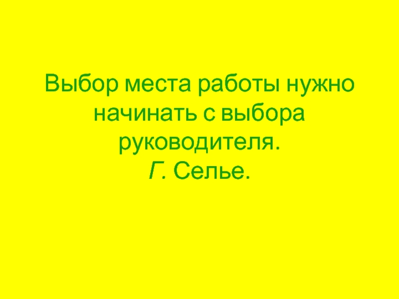 Слайд 3Выбор места работы нужно начинать с выбора руководителя. Г. Селье.