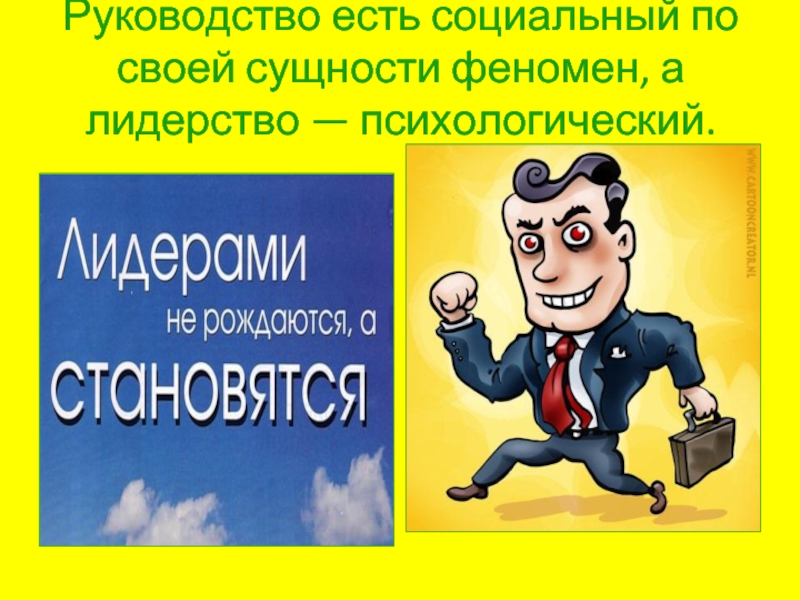 Слайд 4Руководство есть социальный по своей сущности феномен, а лидерство — психологический.