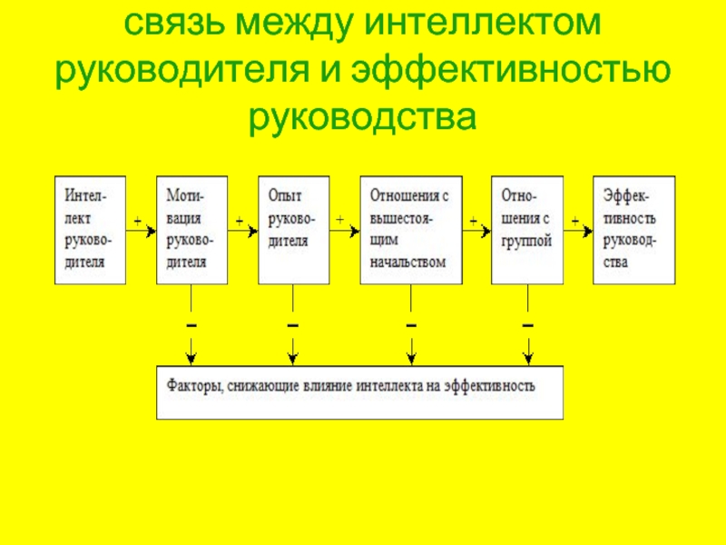 Слайд 9связь между интеллектом руководителя и эффективностью руководства