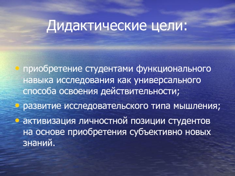 приобретение студентами функционального навыка исследования как универсального способа освоения действительности;