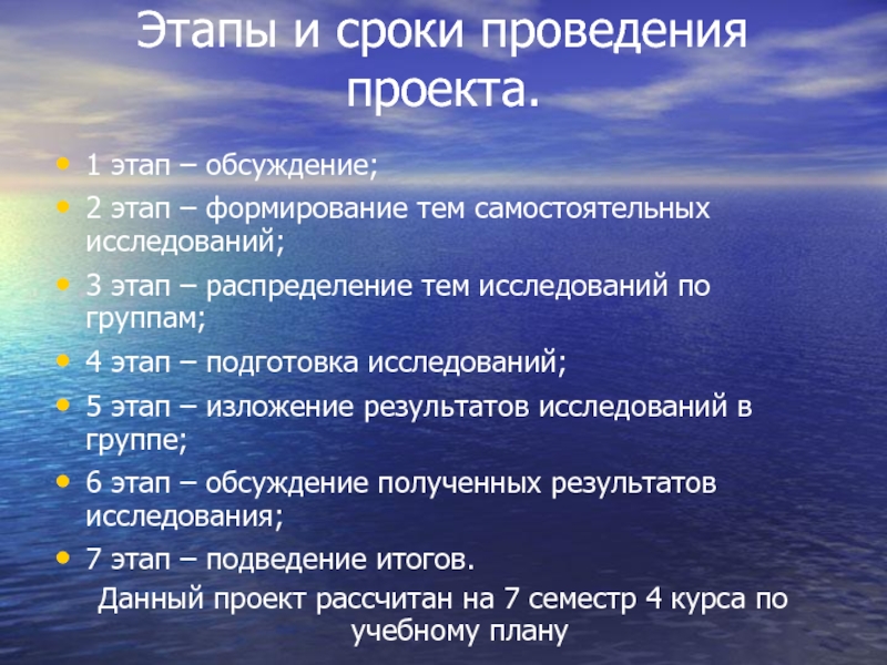 Данный проект рассчитан на 7 семестр 4 курса по учебному плану