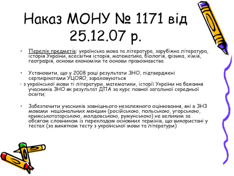 Слайд 3Наказ МОНУ № 1171 від 25.12.07 р.