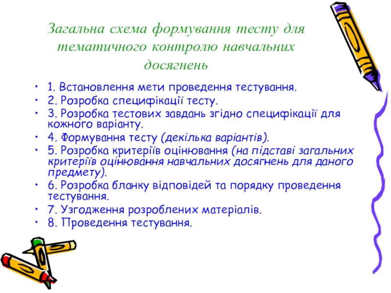 Слайд 15Загальна схема формування тесту для тематичного контролю навчальних досягнень