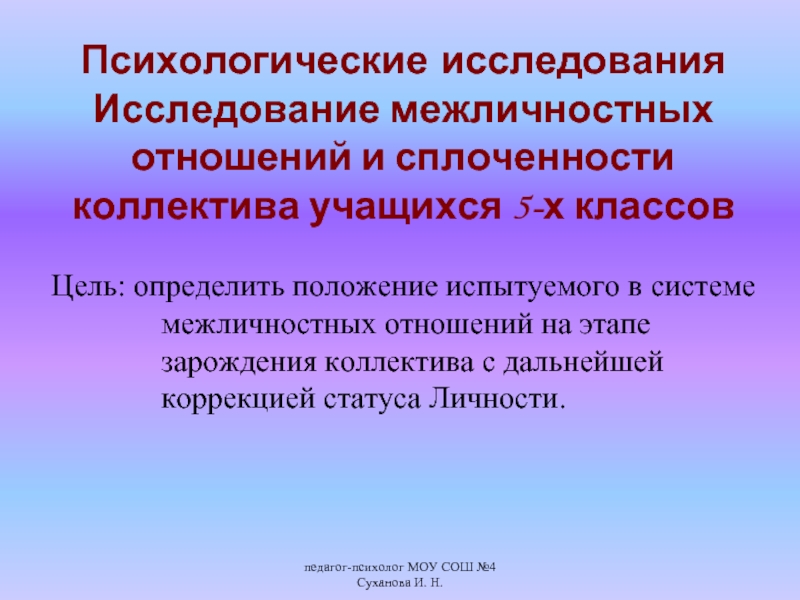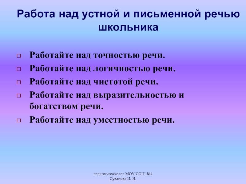 педагог-психолог МОУ СОШ №4 Суханова И. Н.