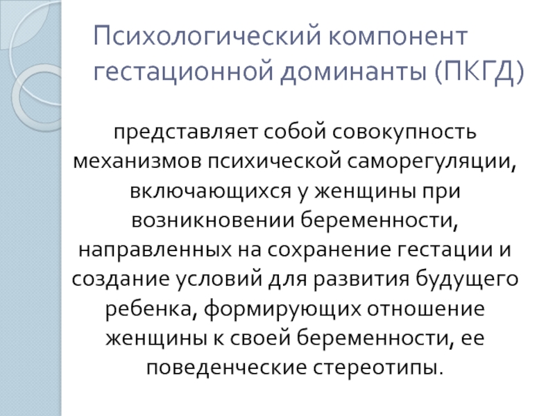 Слайд 10Психологический компонент гестационной доминанты (ПКГД)