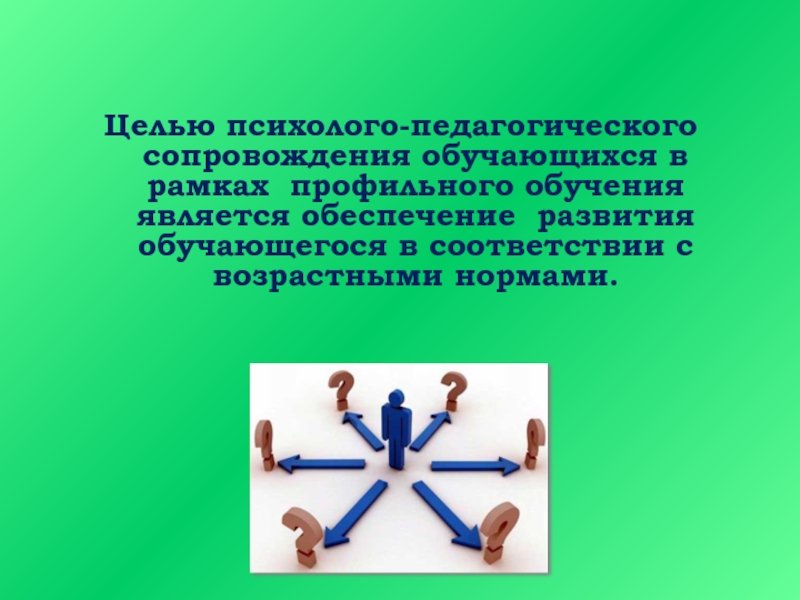 Целью психолого-педагогического сопровождения обучающихся в рамках профильного обучения является обеспечение