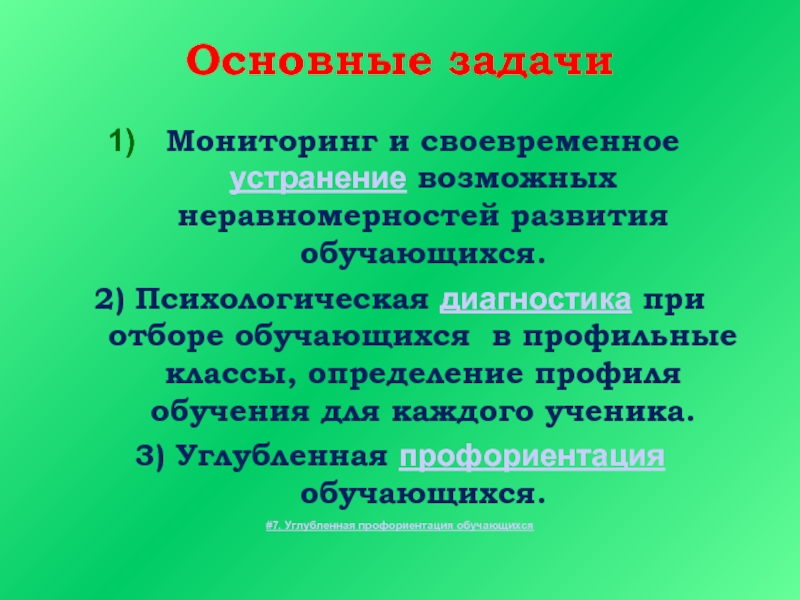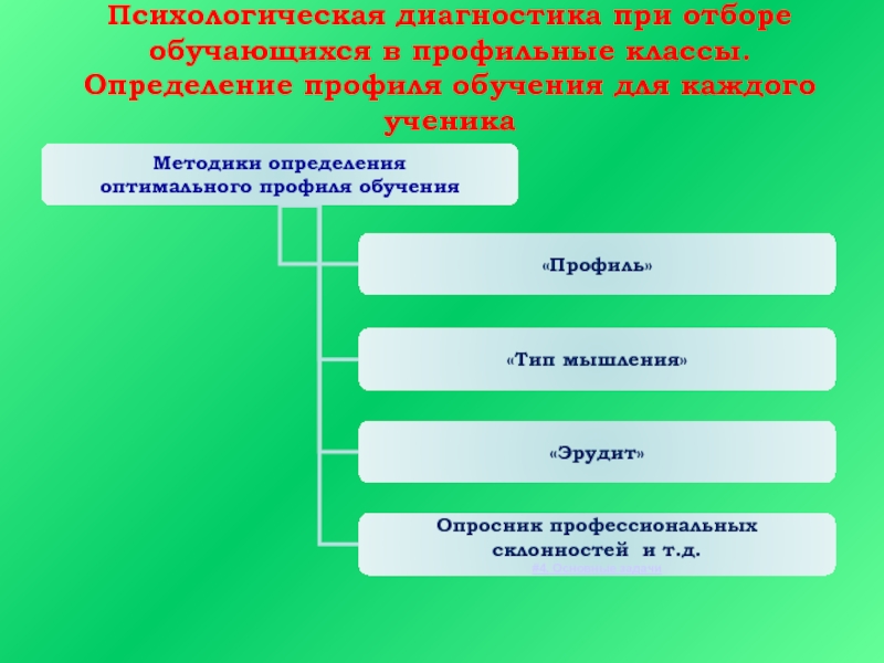 Слайд 6Психологическая диагностика при отборе обучающихся в профильные классы. Определение профиля обучения