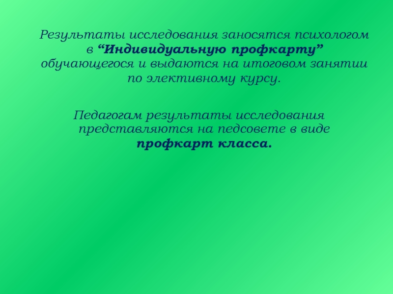 Слайд 10 Результаты исследования заносятся психологом в “Индивидуальную профкарту” обучающегося и