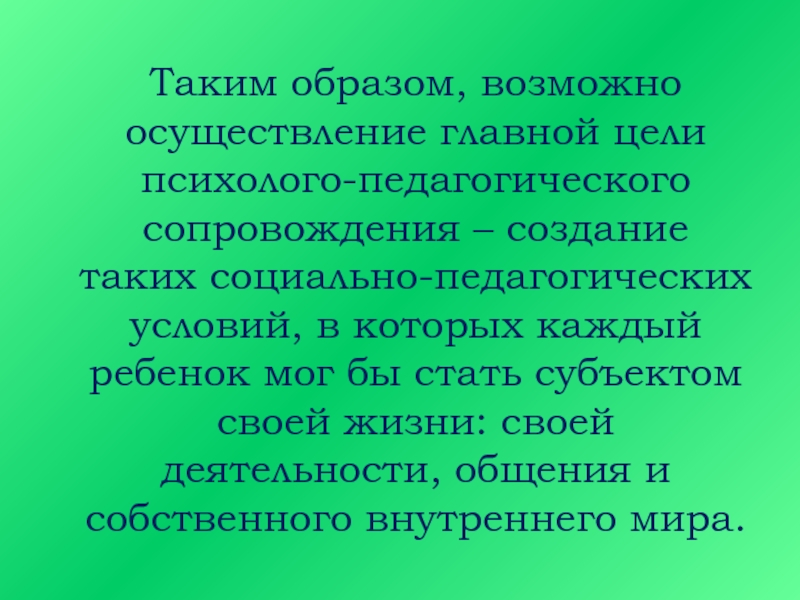 Слайд 16 Таким образом, возможно осуществление главной цели психолого-педагогического сопровождения –
