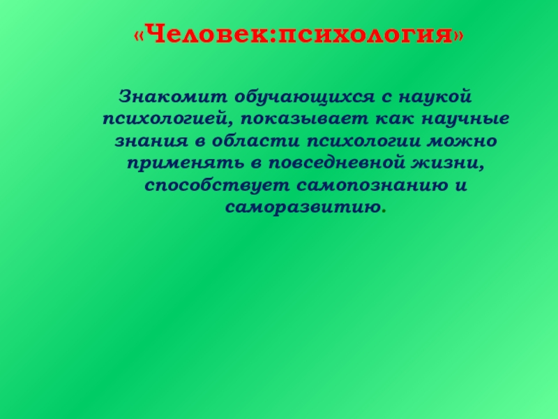 Знакомит обучающихся с наукой психологией, показывает как научные