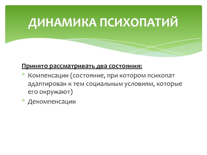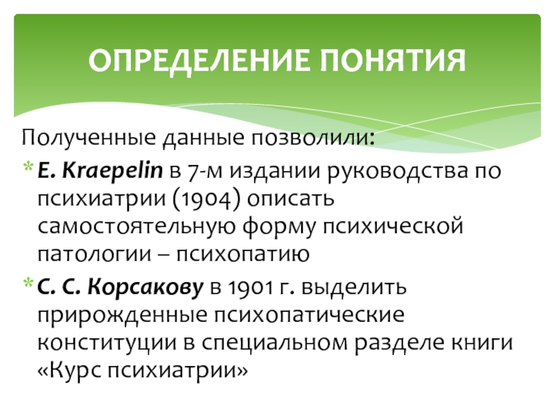 Слайд 9Психопатии (С. С. Корсаков) – болезненное расстройство психической деятельности, которое заключается