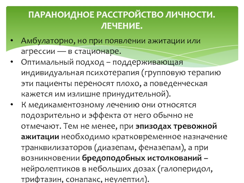 Слайд 70ТРЕВОЖНОЕ (УКЛОНЯЮЩЕЕСЯ) РАССТРОЙСТВО ЛИЧНОСТИ. ЛЕЧЕНИЕ.