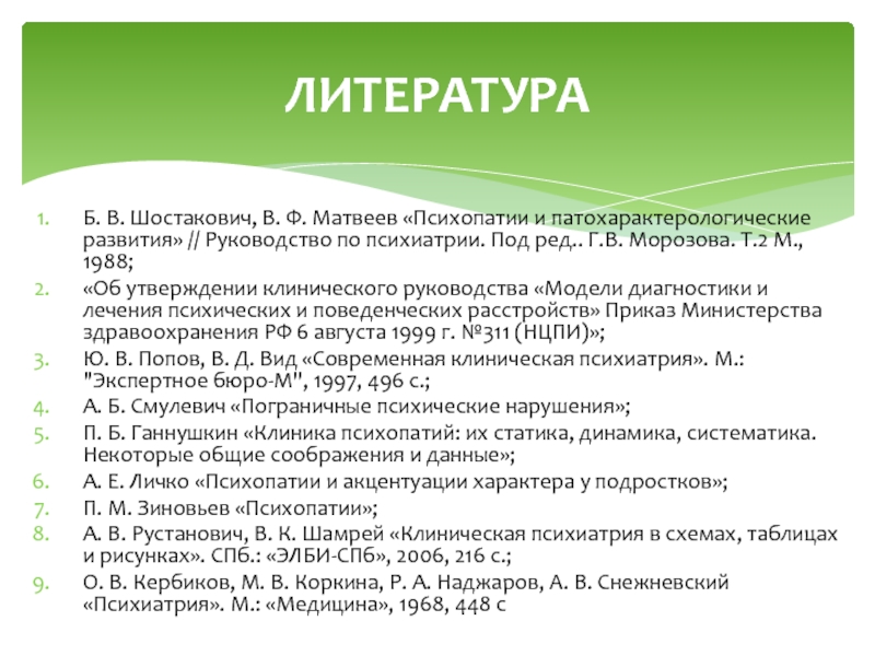 Слайд 81Б. В. Шостакович, В. Ф. Матвеев «Психопатии и патохарактерологические развития» //