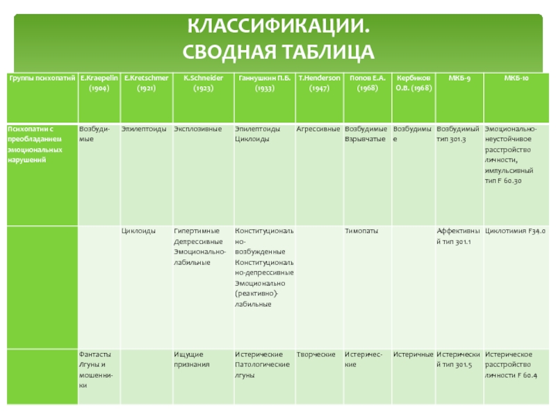 Слайд 15Обширные обзоры по клинике психопатий представлены:
