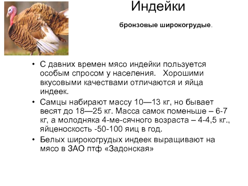 С давних времен мясо индейки пользуется особым спросом у населения. Хорошими вкусовыми качествами отличаются и яйца индеек.