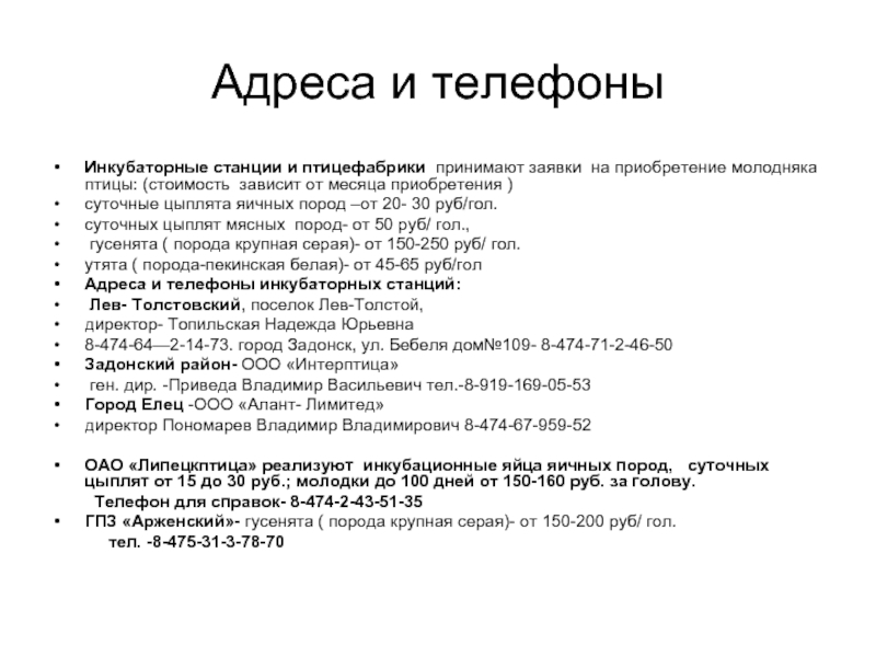 Выращивают кроссы хайсекс белый и коричневый ОАО «Липецкптица» реализуют яйца, суточных цыплят и молодок.