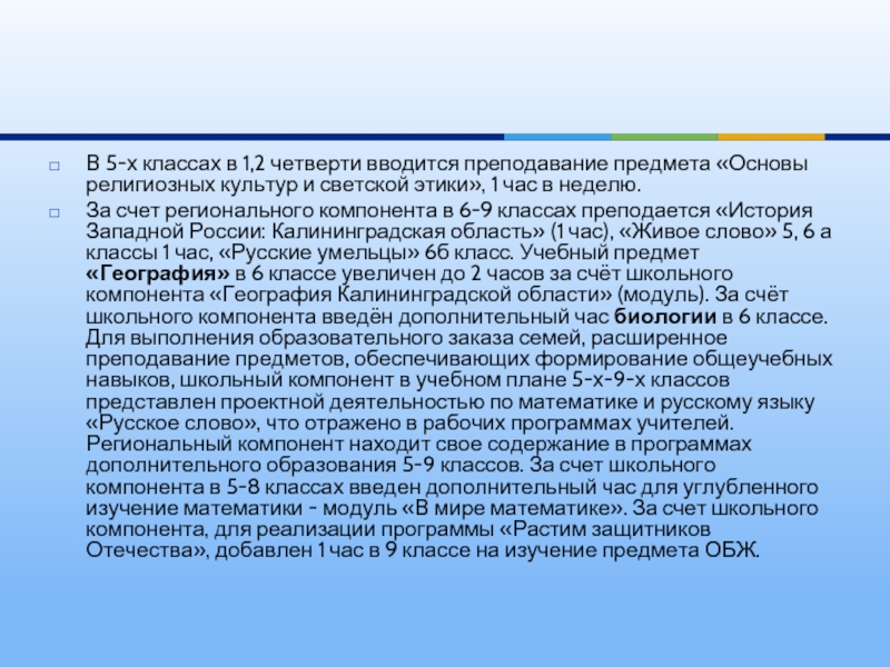 Особенности образовательного процесса