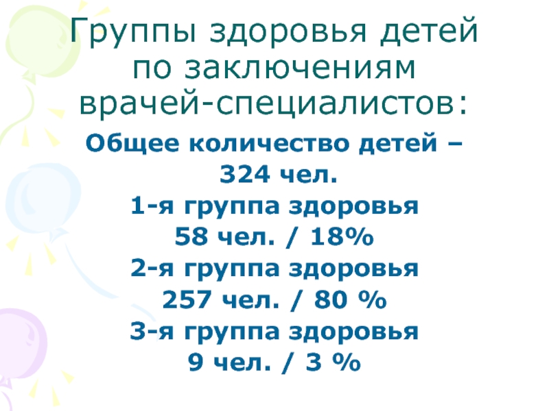 Общее количество патологий и нарушений здоровья у детей – 619, что в среднем – по 2 от общего числа детей.